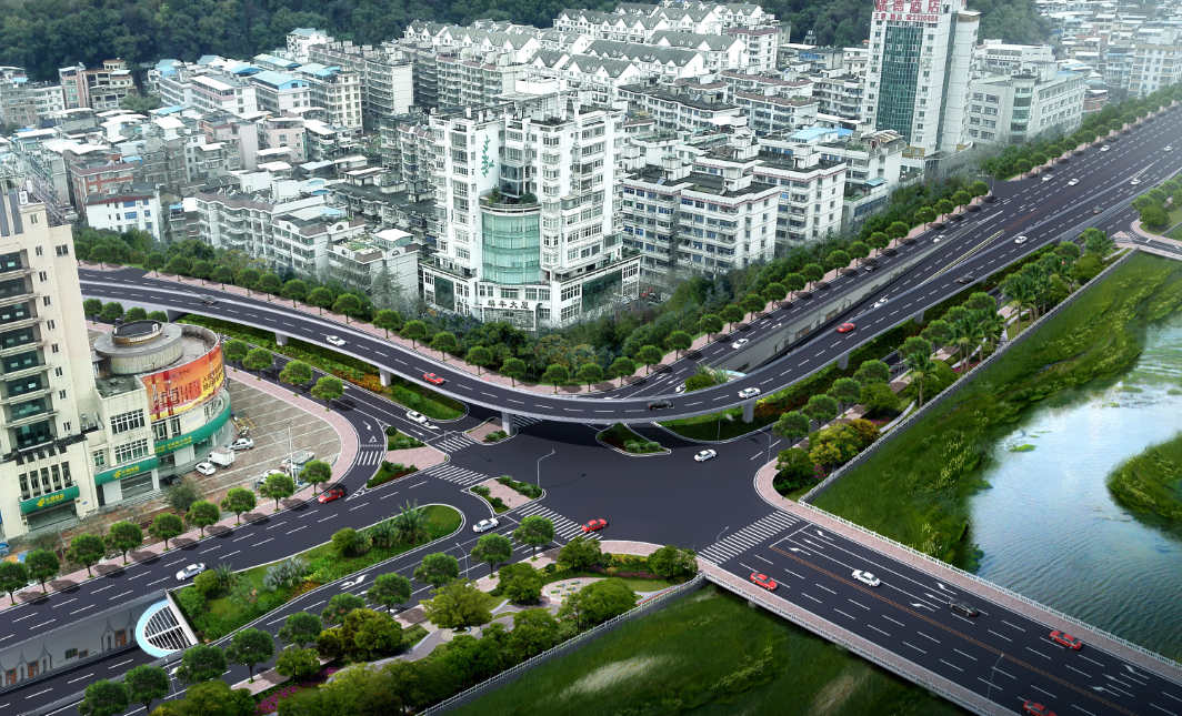 郵政交通節(jié)點項目起于蓮莊北路順康汽車檢測中心處,終于瑞德酒店門口,采取“主線下穿、左轉高架”方案,設下穿通道下穿南環(huán)西路與南環(huán)中路交叉口,全長700米,凈寬2×8.5米,其中暗埋段長度為120米,敞開段(U型槽)長275米;南環(huán)路往溪南南路方向設左轉匝道高架,橋長246米,兩側引道擋墻全長117米,項目總投資約1.4億元。