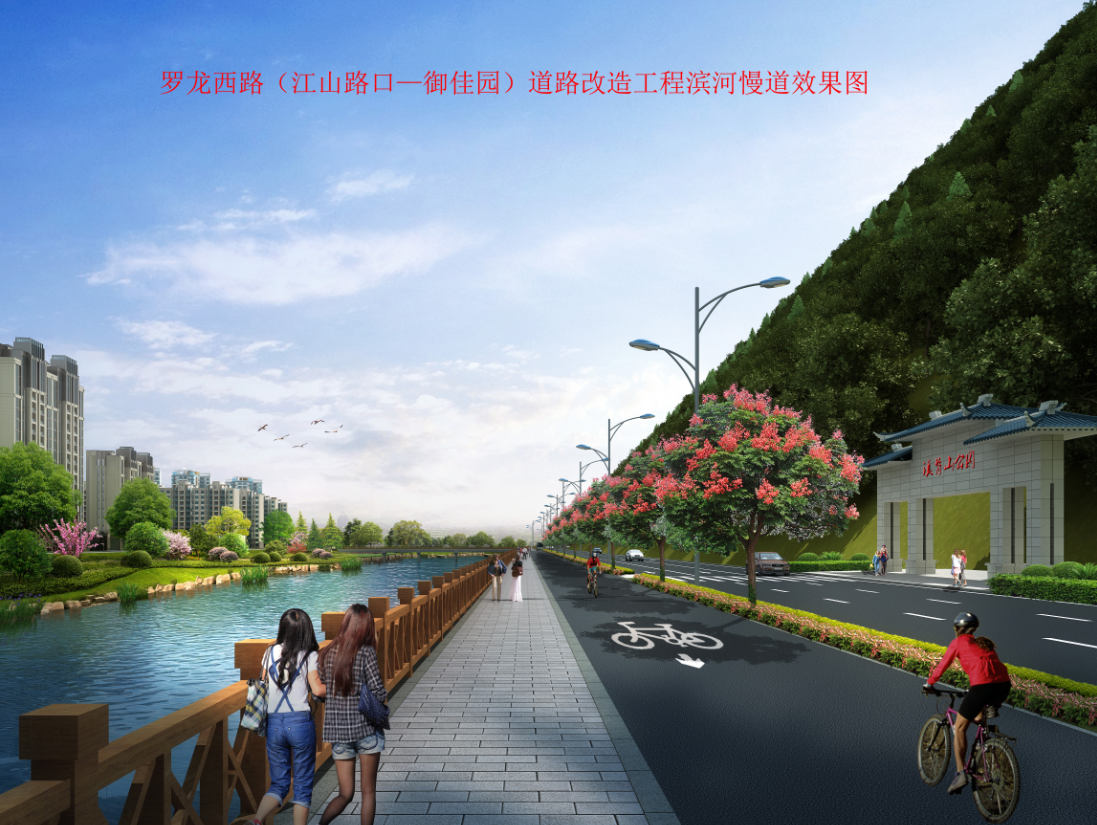羅龍西路是連接龍巖西高速出入口與中心城市的唯一通道,其規(guī)劃改造范圍從紅竹山橋至御佳園路口,全長3855米,計劃將原道路拓寬至40米,實行雙向六車道,兩旁設2.5米非機動車道,并在湖二橋路口以東設640米入城單向三車道隧道連接至御佳園路口,原羅龍西路湖二橋至御佳園段將調整為出城單向車道。