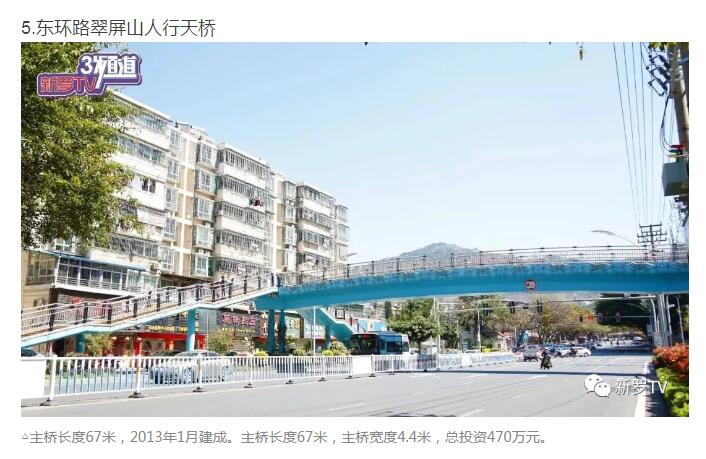 年來(lái),市委、市政府加大市政基礎(chǔ)設(shè)施投入,大力推進(jìn)人行天橋建設(shè)。截止2017年底,中心城市共興建20余座人行天橋。