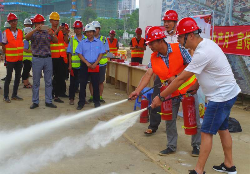 6月16日是“全國(guó)安全生產(chǎn)宣傳咨詢?nèi)铡?。?dāng)日,龍巖城發(fā)集團(tuán)與市城投公司組織人員分別前往中心城區(qū)華蓮西路一期、火車站站前高架橋、龍巖大橋高架橋、龍巖大道四期下穿工業(yè)路通道等四個(gè)項(xiàng)目工地,開展安全生產(chǎn)宣傳活動(dòng)。圖為工作人員現(xiàn)場(chǎng)指導(dǎo)工人使用滅火器。