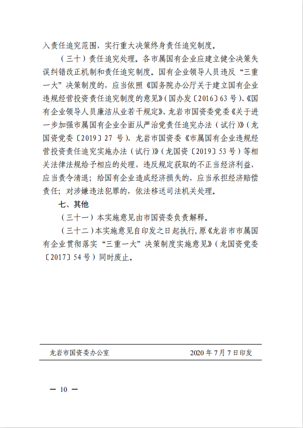 關(guān)于進(jìn)一步規(guī)范市屬國有企業(yè)貫徹落實(shí)“三重一大”決策制度實(shí)施意見(國資黨委[2020]21號)