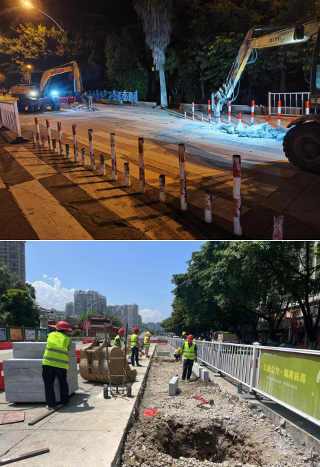 小溪路口地處老城區(qū)、蓮東片區(qū)、新城區(qū)交界處,群眾反映該路口交通標(biāo)識(shí)不清、行人過(guò)街不便等,存在安全隱患,為此,市委、市政府及市住建局等相關(guān)部門高度重視,決定由市政集團(tuán)所屬企業(yè)市城投公司對(duì)該路段實(shí)施提升改造,重點(diǎn)實(shí)施道路白改黑、雨污分流改造、綠化提升、道路標(biāo)識(shí)完善、交通安全設(shè)施提升等建設(shè),項(xiàng)目總投資約3500萬(wàn)元。工程于7月下旬開(kāi)工建設(shè),目前正在進(jìn)行混凝土病害處理、雨水管網(wǎng)開(kāi)挖鋪設(shè)、路沿石安裝及各管線遷改等施工作業(yè)。